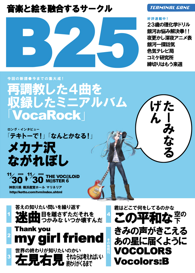 本日ボーカロイドマスター6、たーみなる☆げんのスペースへお越しいただいた方、『VocaRock』を手にとっていただいた方、皆様本当にありがとうございました!